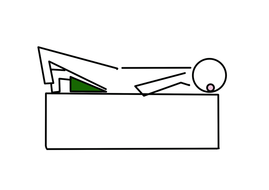 うつ伏せに寝て、片方の足の下にタオルやクッションを置き5分伸ばしていきます。